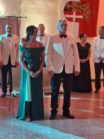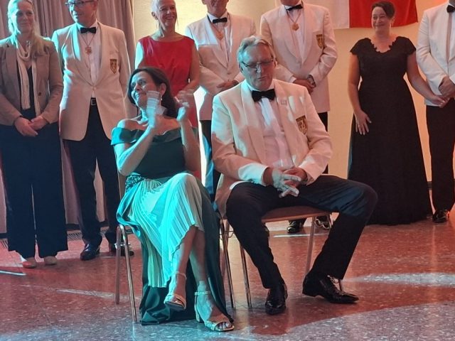 Nach der offiziellen Begrüßung der zahlreichen Gäste durch dem Reiterchef Klaus Wilms, begann zeitnah die Inthronisation des Reitersiegerpaares Andreas und Marion Lehmann mit der Übergabe der Siegerkette.