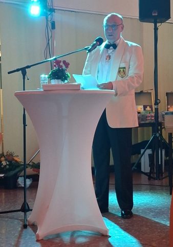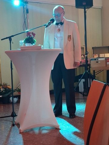 Die Laudatio auf unseren Reitersieger wurde sehr kurzweilig und unterhaltsam von Uwe Kirschbaum vorgetragen und brachte doch interessante Dinge über unseren aktuellen Reitersieger hervor. Es wurde der Weg unseres Reigersiegers vom jugendlichen Rockmusiker zum Dachdeckermeister und seinen Weg in das Schützenwesen beschrieben.